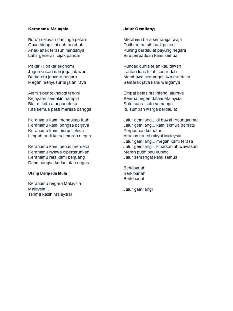 Lirik Lagu Sejahtera Malaysia Pdf